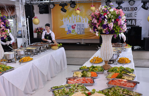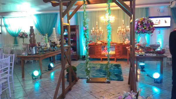 Salão de Festas Amplo salão de festas com espaço para eventos para 450 pessoas. Infraestrutura completa: mesas, cadeiras, mesas para noivos e doces, buffet, palco, iluminação, som, amplos banheiros e muito mais. Tudo para seu evento ser um sucesso!